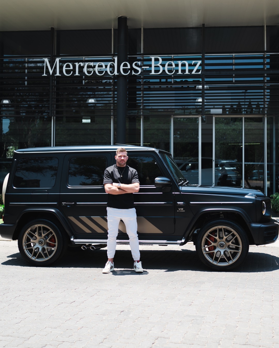 Mercedes‑Benz G63 AMG: A true statement piece. Du Plessis was seen alongside this beast on his 31st birthday — reportedly valued at around R5 million. With a bold, commanding presence, the G63 aligns with his “power-play” persona.